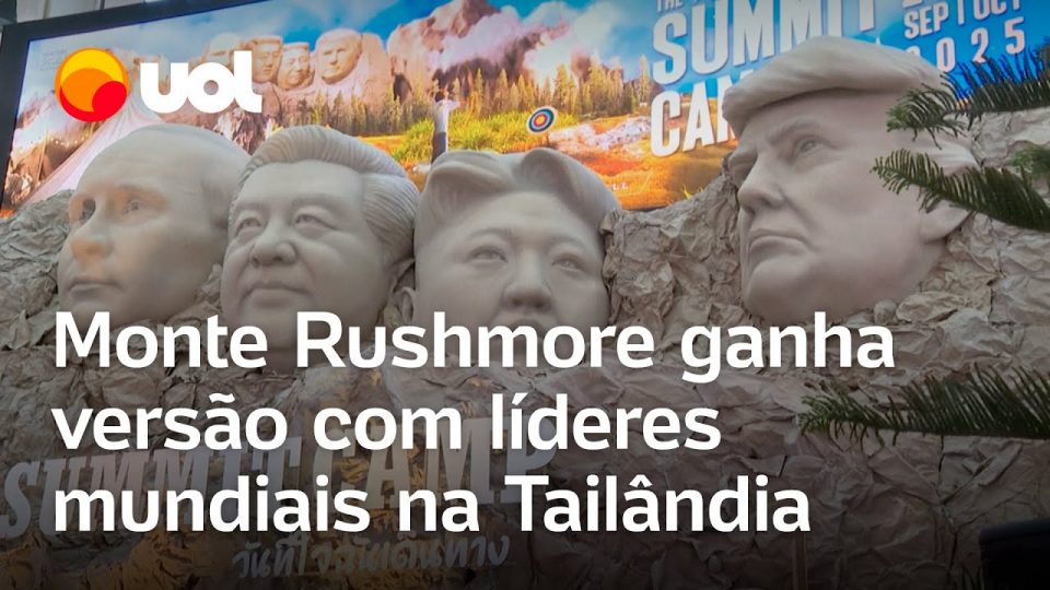 Um shopping de Bangkok, na Tailândia, inaugurou uma réplica do Monte Rushmore com os rostos de Donald Trump, Vladimir Putin, Xi Jinping e Kim Jong-un. A obra chamou a atenção de quem passava pelo local e, de certa forma, afaga o sonho do presidente americano.