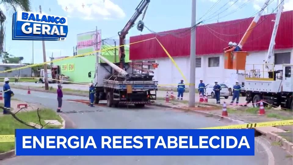 Um motorista derrubou um poste de energia na QR 100 de Santa Maria (DF) e fugiu do local. Moradores ficaram sem luz. O Detran interditou a área para evitar novos acidentes. Técnicos da Neoenergia foram acionados e trabalharam para reconstruir a rede elétrica e substituir a estrutura danificada. A energia já foi restabelecida na maioria dos imóveis.