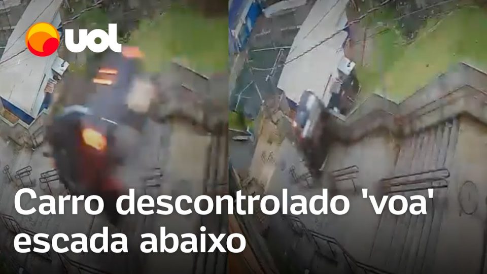 Na manhã de hoje, um homem de 47 anos perdeu o controle do veículo e o carro desceu uma escadaria “voando”. Incidente ocorreu no Jardim Apurá, na Zona Sul de São Paulo.