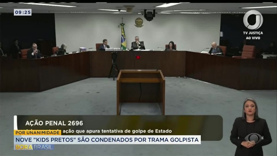 BrasilDestaquesMundoNove “kids pretos” são condenados por trama golpista de admin19/11/202505 Compartilhar0 Por unanimidade, a Primeira Turma do STF condenou 9 dos 10 réus do núcleo dos Kids Pretos no processo por tentativa de golpe. O grupo era formado, na maioria, por militares da ativa e da reserva do Exército. #BandJornalismo #BoraBrasil source
