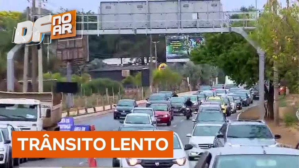 Na Avenida Elmo Serejo, em Taguatinga (DF), uma obra está causando congestionamento no sentido Taguatinga e Plano Piloto. A Secretaria de Obras e a Novacap foram questionadas sobre a intervenção, mas ainda não responderam. O engarrafamento ocorre antes do túnel Rei Pelé e é resultado das obras emergenciais iniciadas após um desmoronamento em 2013.