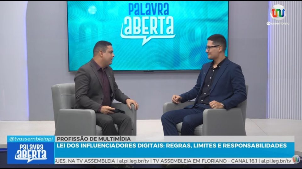 Nessa edição do Palavra Aberta, o jornalista Thiago Moraes recebe Rodrigo Araújo, mestre em criminologia e em Direito, especialista em Direito Civil e Processo Civil, bem como em Direito do Trabalho e Processo do Trabalho. No programa, a entrevista tem como tema Profissão Multimídia no âmbito da Lei dos Influenciadores Digitais: Regras, limites e responsabilidades.