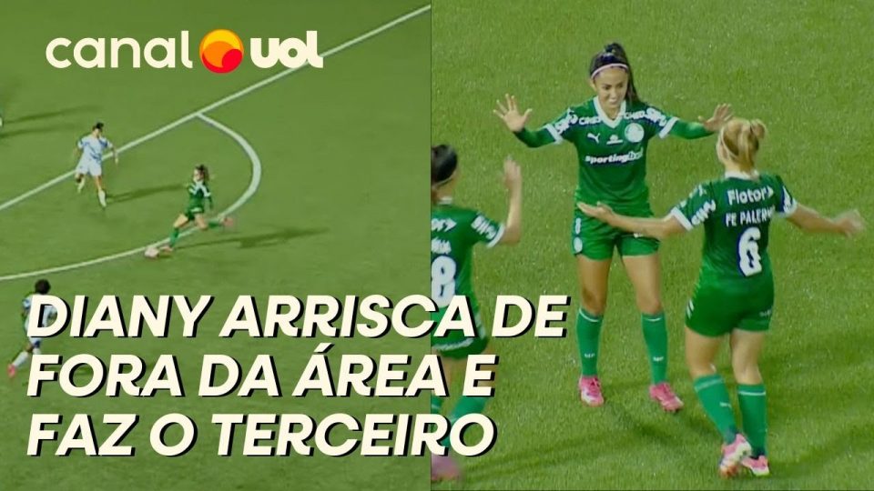Diany arriscou um bom chute rasteiro e, de fora da área, fez o terceiro gol do Palmeiras no jogo.