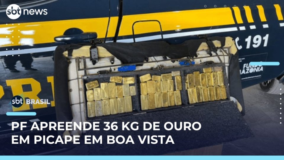 A Polícia Rodoviária Federal apreendeu 36 kg de ouro escondidos em compartimento secreto de uma picape em Boa Vista. O ouro, avaliado em R$ 25 milhões, estava dividido em 48 barras. O motorista foi preso e encaminhado à Polícia Federal. Esta é a terceira apreensão de ouro no estado em dois meses, somando centenas de quilos retirados do contrabando. Saiba todos os detalhes no SBT Brasil.