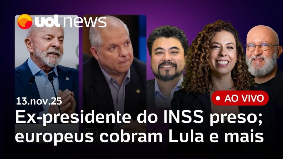 No UOL News 1ª Edição desta quinta-feira (13): Ex-presidente do INSS, Alessandro Steganutto, é preso em operação da PF; ex-ministro de Bolsonaro também é investigado; Motta adia votação da PL Antifacção; Bolsonaro pede visita de Castro; Lula é cobrado por países europeus na COP30 sobre Rússia; e mais notícias ao vivo com Fabiola Cidral, Josias de Souza e Leonardo Sakamoto.