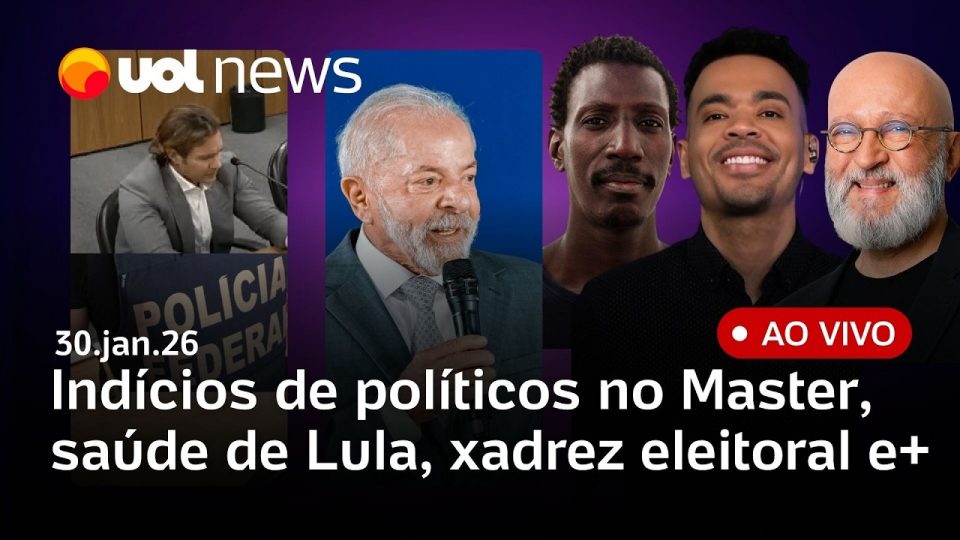 O UOL News desta sexta-feira acompanha a cirurgia de catarata realizada pelo presidente Lula em Brasília e detalha os próximos passos de sua recuperação. No campo das investigações, a Polícia Federal encontra indícios de envolvimento de políticos no caso do Banco Master e analisa contradições em depoimentos de Daniel Vorcaro. Confira também a decisão do PL de Santa Catarina sobre a candidatura de Carlos Bolsonaro ao Senado.