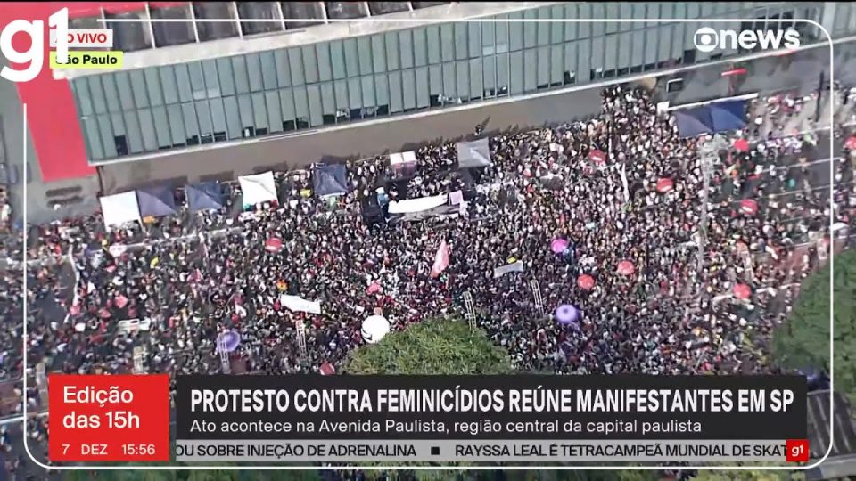 Protesto contra feminicídio reúne manifestantes na Avenida Paulista em SP
