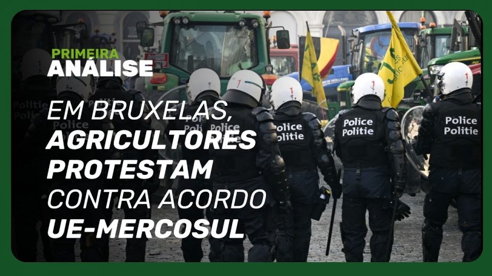 Centenas de tratores foram levados a Bruxelas nesta quinta-feira(18), em uma demonstração da indignação dos agricultores com o acordo comercial planejado pela União Europeia com o bloco sul-americano Mercosul.