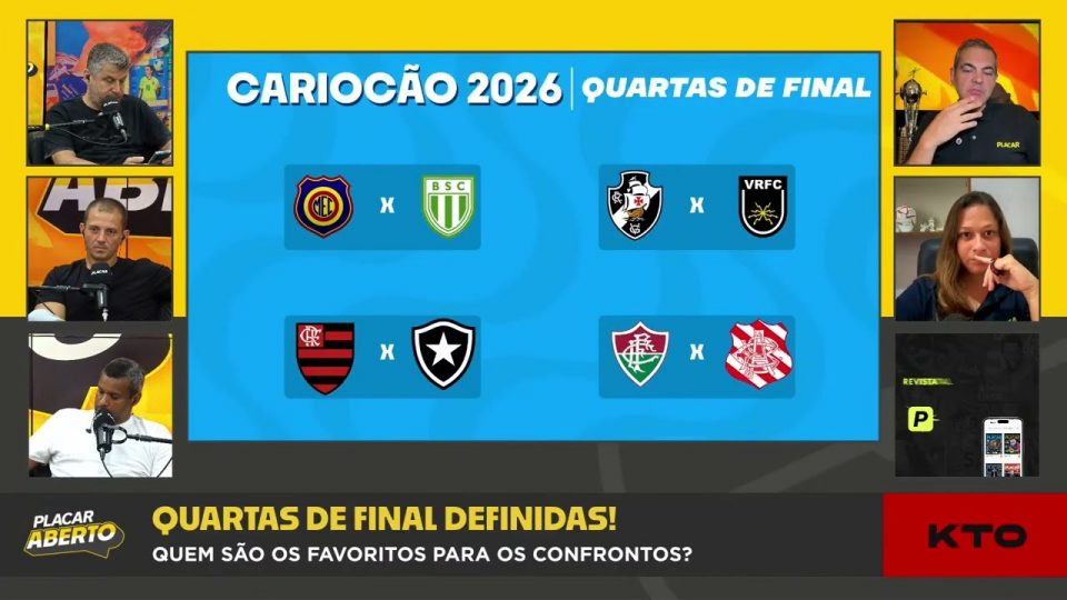 DestaquesEsportesQUARTAS DE FINAL DO CARIOCÃO, QUEM SÃO OS FAVORITOS? | Corte do Placar Aberto de admin09/02/2026019 Compartilhar0 FAÇA A SUA ASSINATURA! http://www.placar.com.br/MEMBROS ____ Deixa o like. 👍 Se inscreve no canal. 📩 Ative o sininho. 🔔 source
