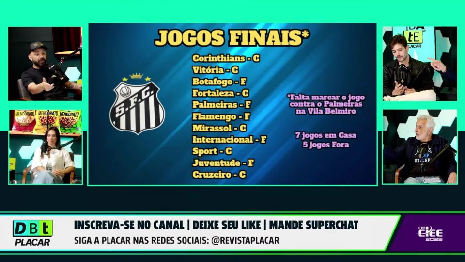 O comentarista Fábio Sormani afirma que o Santos tinha tudo para reagir no início do campeonato com a presença de Benjamin Rollheiser e Neymar Jr. em campo, destacando como essa dupla poderia transformar o rendimento da equipe. Ele também analisa os desafios que vêm pela frente, comentando confrontos importantes contra Corinthians, Mirassol, Flamengo, Palmeiras, Sport e Botafogo. Em um dos trechos mais incisivos, Sormani relembra episódios do rebaixamento do Santos e dispara: “EU SAIO NO BRAÇO COM QUEM FALA QUE O SANTOS NÃO VAI CAIR”.