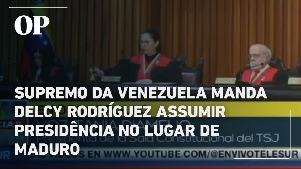 O Tribunal Supremo de Justiça da Venezuela ordenou que a vice-presidente Delcy Rodríguez assuma de forma interina os poderes do presidente Nicolás Maduro, capturado pelos Estados Unidos após bombardear Caracas.