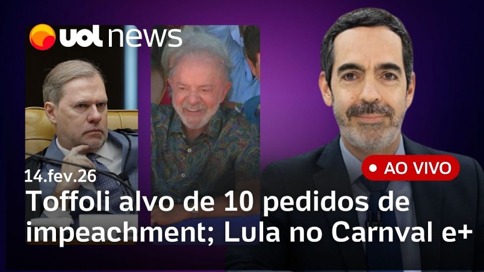No UOL News 2ª Edição deste sábado (14): Vorcaro relatou cobrança por aporte a resort de Toffoli, segundo jornal; Toffoli é alvo de 10 pedidos de impeachment no Senado; Lula participa do Galo da Madrugada em presença inédita e reúne aliados políticos no camarote oficial; Carlos Bolsonaro incentiva candidatura de Michelle ao senado pelo DF e mais notícias ao vivo com Mauro Tagliaferri.