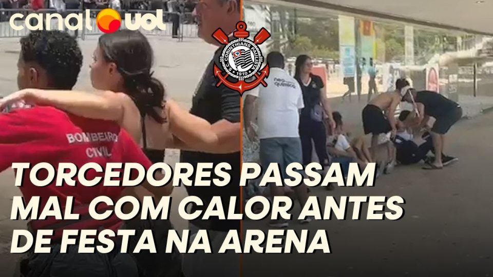 TORCEDORES DO CORINTHIANS PASSAM MAL COM CALOR ANTES DE FESTA NA NEO QUÍMICA ARENA