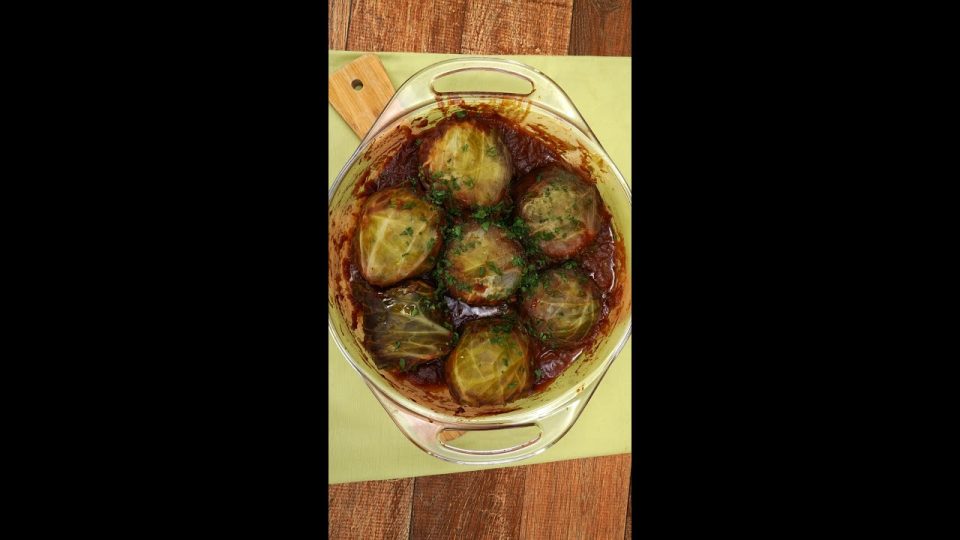 No refratário, adicione o molho de tomate, o caldo de carne e temperos a gosto. E distribua as bolas de repolho por todo o fundo. Proteja com papel alumínio e leve ao forno a 180 ºC por 40 minutos. Sirva!
