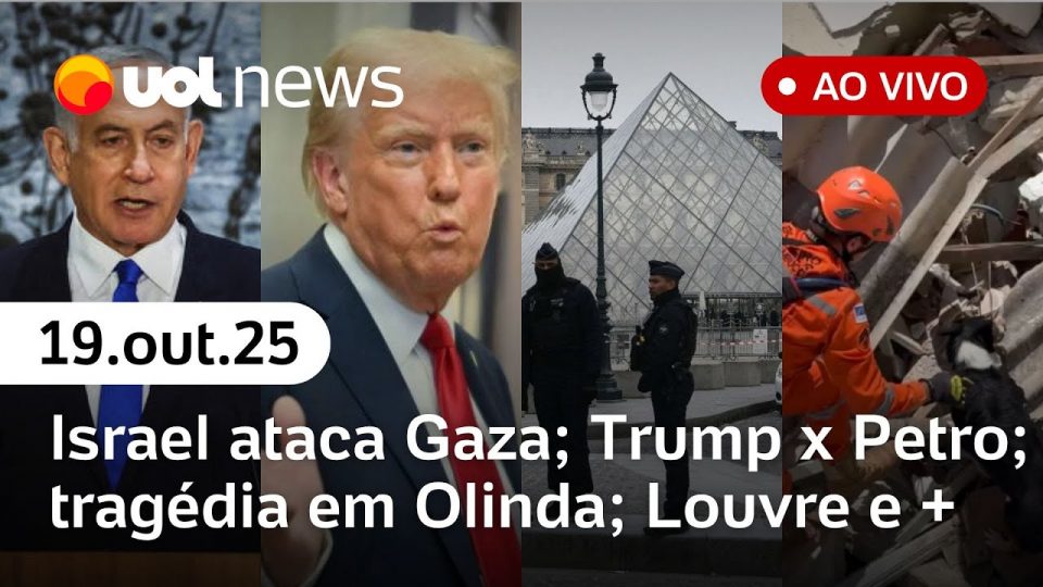 No UOL News deste domingo (19): Desabamento de imóvel deixa dois mortos e ao menos nove feridos em Olinda; Trump chama Petro de ‘líder de drogas ilegais' e sugere ações contra cartéis na Colômbia; Israel acusa Hamas de violar cessar-fogo e volta a bombardear Faixa de Gaza; Assalto no louvre: últimas notícias, atualizações, perfil do museu e mais notícias ao vivo.