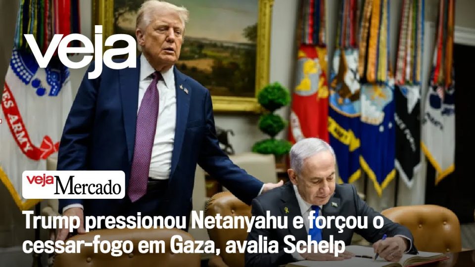 Sem a pressão de Donald Trump, o cessar-fogo entre Israel e o Hamas jamais teria acontecido — é o que explica o editor de VEJA, Diogo Schelp, em seu comentário no programa Mercado, apresentado por Diego Gimenes. Segundo Schelp, o primeiro-ministro Benjamin Netanyahu pretendia seguir na ofensiva militar até a eliminação completa do Hamas, mas a intervenção direta do presidente americano foi decisiva para viabilizar o acordo.