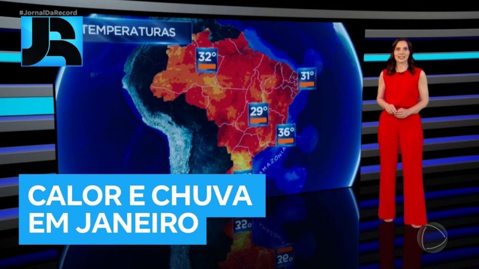 A tendência é que janeiro tenha temperaturas abaixo da média no Centro-sul, destacado em azul no mapa. Já as regiões em vermelho, partes do Norte e do Nordeste, a previsão é de calor acima da média.