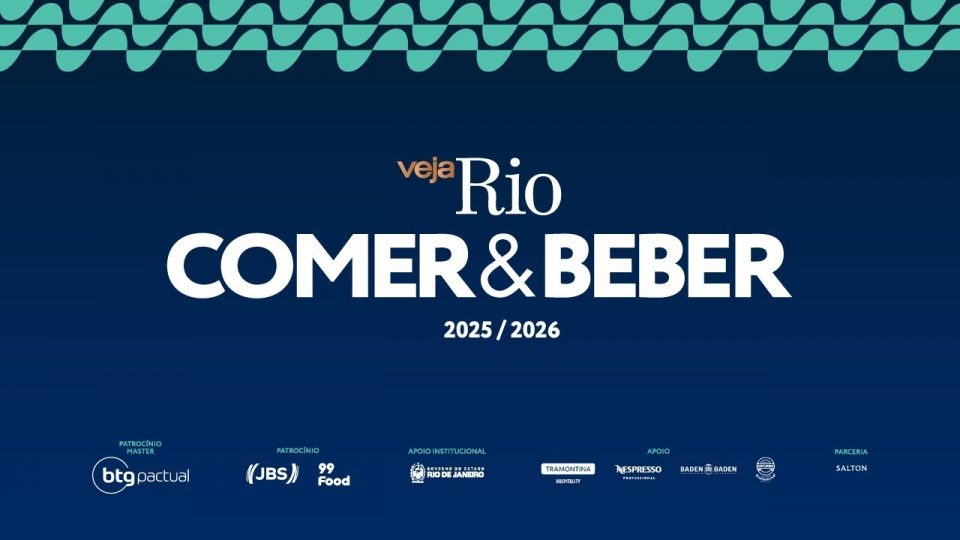 COMER & BEBER 2025/2026 é uma realização de VEJA Rio com patrocínio master de BTG Pactual, patrocínio de JBS e 99Food, apoio institucional do Governo do Rio de Janeiro, apoio de Tramontina Hospitality, Nespresso Professional, Baden Baden e Catupiry Profissional, e parceria de Salton.