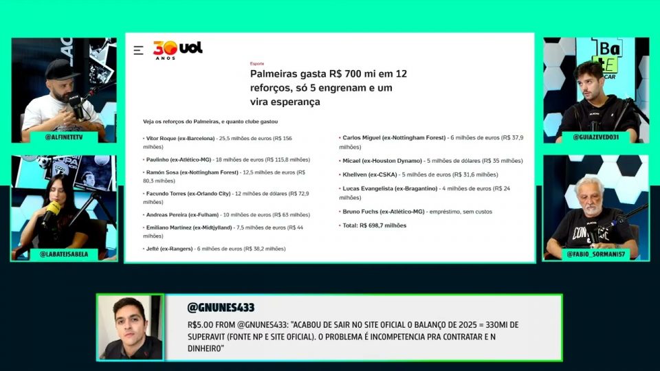 DestaquesEsportesVERDÃO TEM DINHEIRO OU NÃO PARA NOVAS CONTRATAÇÕES? | Corte Debate Placar de admin03/02/2026011 Compartilhar0 FAÇA A SUA ASSINATURA! http://www.placar.com.br/MEMBROS ____ Deixa o like. 👍 Se inscreve no canal. 📩 Ative o sininho. 🔔 source